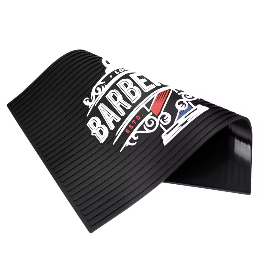 Suprafața texturată este special concepută pentru a păstra foarfecile, mașinile de tuns, pieptenii, lamele, briciurile și accesoriile în poziție stabilă, fără riscul de a se rostogoli sau de a cădea. Materialul cauciucat este rezistent la apă și la produse cosmetice – uleiuri, loțiuni, pudre –, ceea ce face curățarea rapidă și simplă. Totodată, absoarbe vibrațiile și reduce zgomotul generat de ustensilele metalice, contribuind la un mediu de lucru mai plăcut.