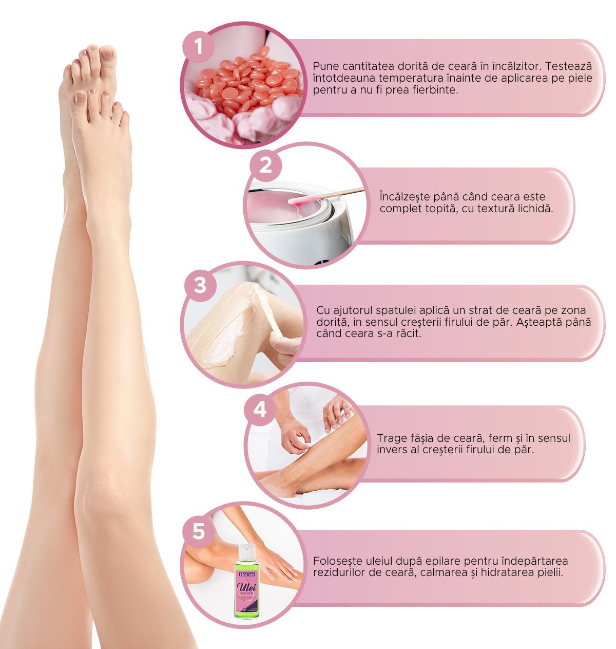 Ceara de tip granule are multiple avantaje: se poate topi chiar si in cantitati mici, este refolosibila si poate fi folosita chiar si pe zonele sensibile ale pielii.