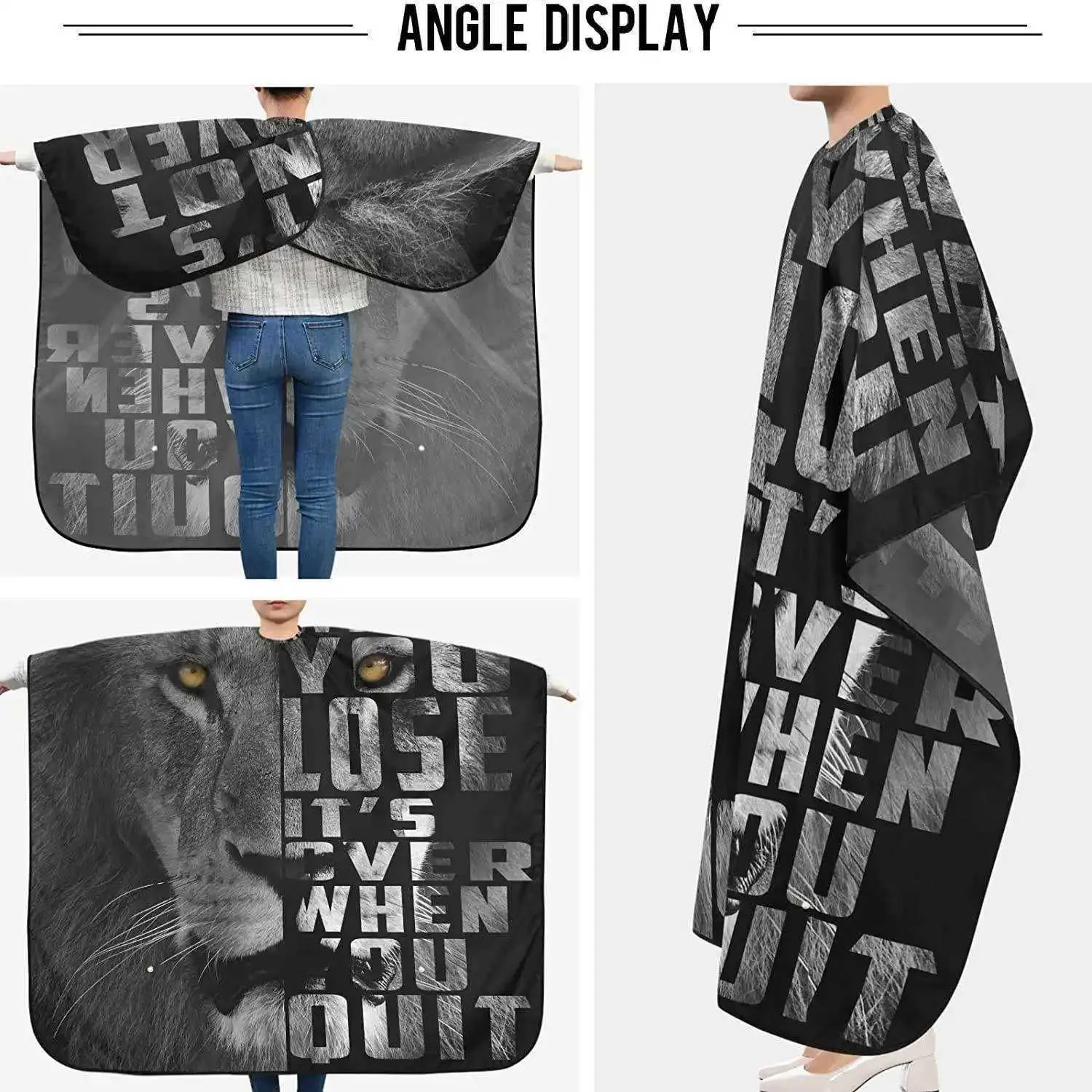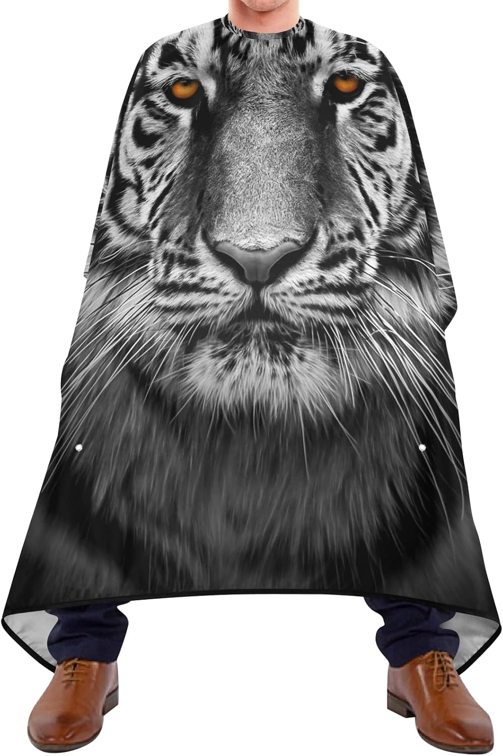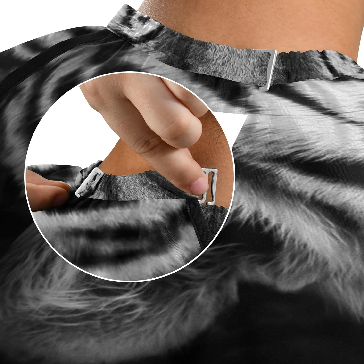 Setul de 2 pelerine tuns profesionale negre, impermeabile, este ideal pentru frizerie și coafor, oferind protecție completă împotriva părului tuns, apei, vopselelor și produselor de styling. Una dintre pelerine are imprimeu Leu, iar cealaltă Tigru, adăugând un plus de stil și personalitate în salon. Fabricate din material impermeabil și durabil, pelerinele sunt ușor de curățat și întreținut, menținând igiena în timpul fiecărei sesiuni. Elasticul la gât asigură fixare confortabilă, iar clemele metalice oferă stabilitate suplimentară, prevenind alunecarea în timpul tunsului. Lungimea generoasă protejează complet trunchiul, iar designul modern și atractiv transformă fiecare sesiune într-o experiență profesională și organizată. Setul este perfect pentru frizerii, coafeze și hairstyliști mobili care doresc să combine funcționalitatea cu estetica.