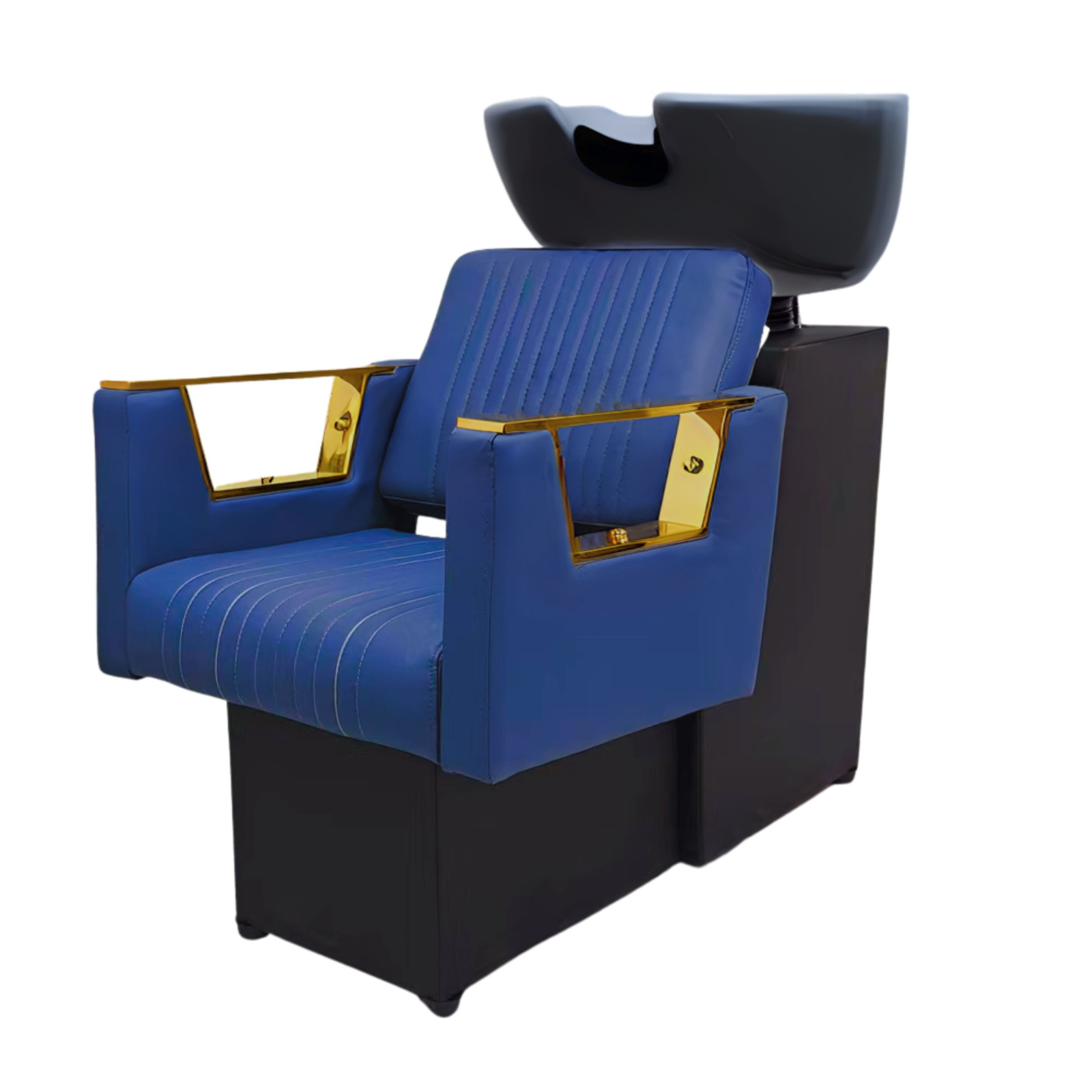 Alege eleganța și funcționalitatea pentru salonul tău cu această scafă coafor profesională în nuanță albastru închis, completată de accente aurii sofisticate. Concepută special pentru saloane moderne și premium, această unitate de spălare oferă un echilibru perfect între design de impact, confort pentru client și eficiență pentru stilist.